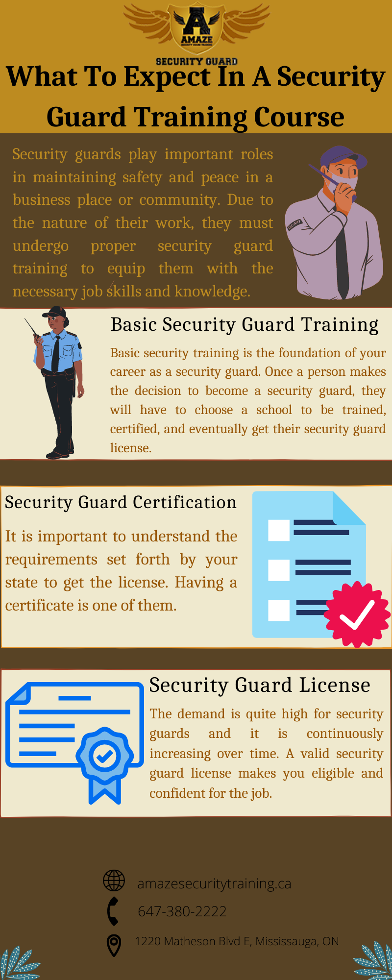 Security guards play a very important role in our communities. They are there to protect our property, enforce regulations and maintain security. A valid security guard license makes you eligible and confident for the job. Amaze security training provides you license and certificates with complete course.